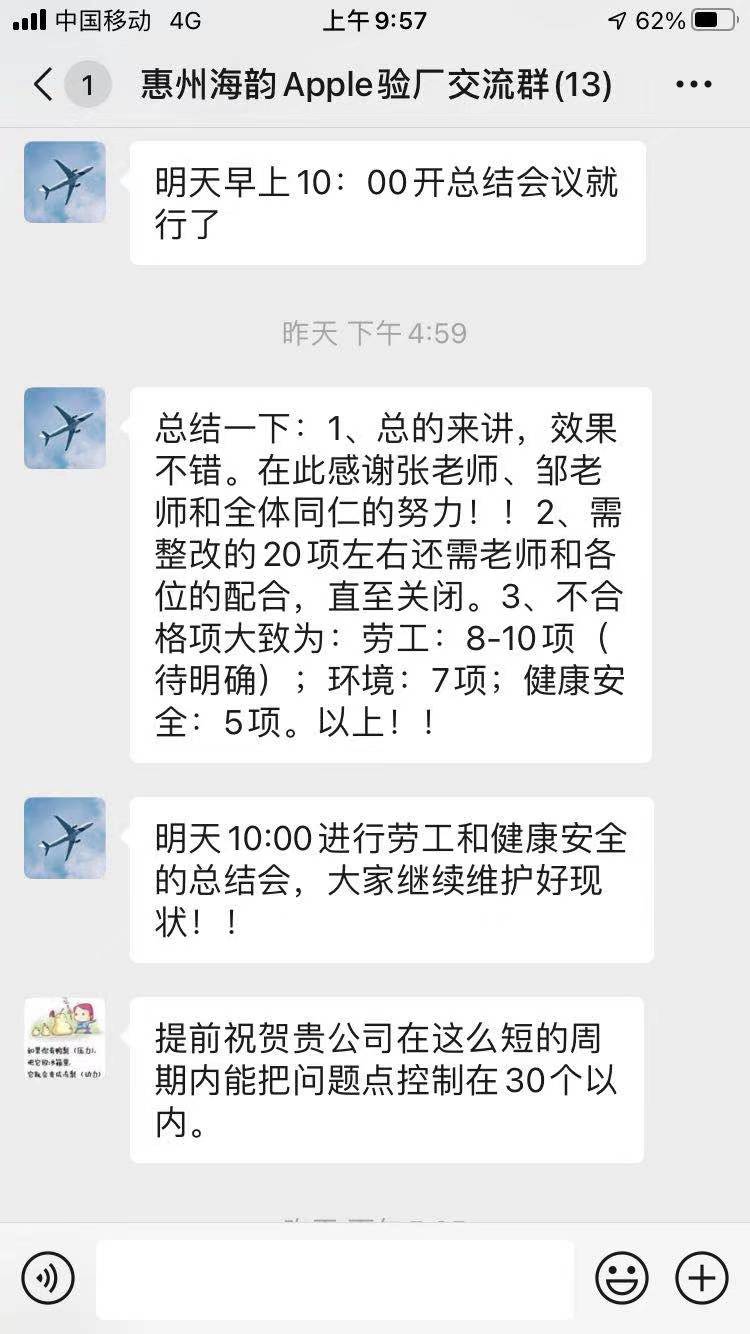 祝惠州市海韻電子有限公司2021年通過Apple蘋果驗廠第一階段審核