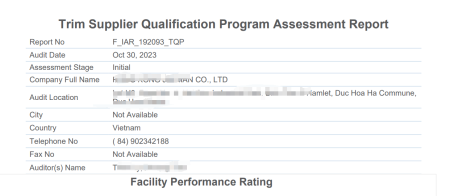 祝賀HONGKONG俊文(越南)有限公司2023年快速通過(guò)ITS-TQP驗(yàn)廠審核并且獲得94分