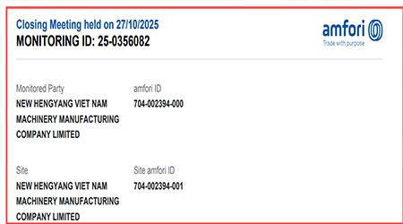 祝賀越南NEW HENGYANG VIET NAM MACHINERY MANUFACTURING COMPANY LIMITED2025年快速通過SGS-BSCI驗廠
