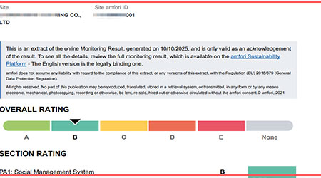 在創(chuàng)思維驗(yàn)廠網(wǎng)老師專業(yè)技術(shù)、全程跟進(jìn)耐心細(xì)致輔導(dǎo)以及公司全體員工配合下,一次性順利通過BSCI-B級(jí),為將來公司發(fā)展奠定了良好的發(fā)展基礎(chǔ),既開拓了市場(chǎng)同時(shí)也增加了消費(fèi)者對(duì)公司的信賴,在這里再次祝賀柬埔寨LISHUN BOYE CLOTHING CO.,LTD 2025年成功通過BSCI-B級(jí),同時(shí)也期待未來再次與創(chuàng)思維驗(yàn)廠網(wǎng)合作!